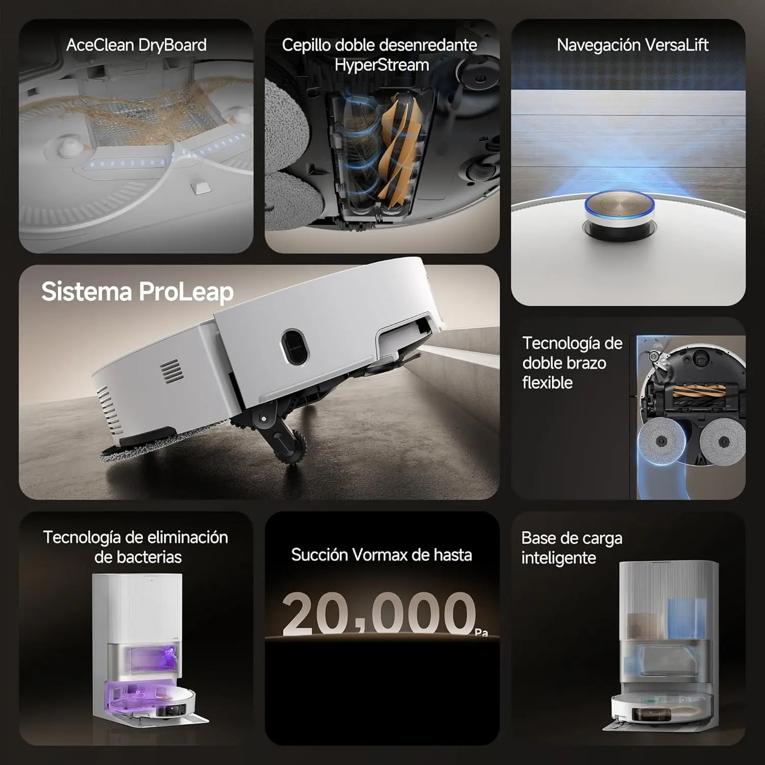 | Potencia de succión | 20.000 Pa (Récord del mercado) |